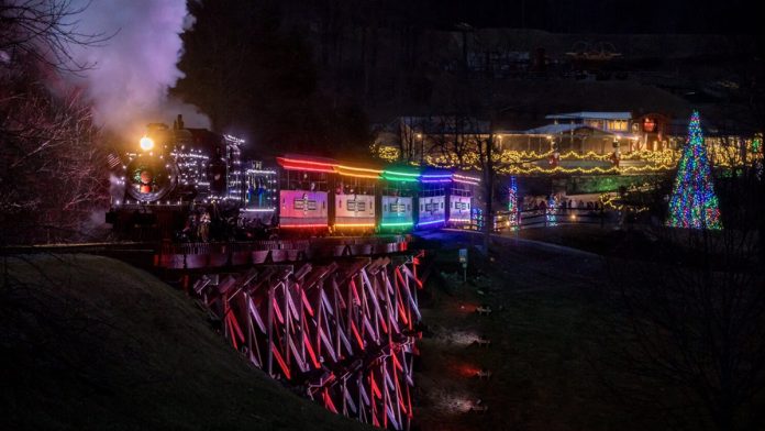 Enjoy a holiday railroad experience in the beautiful Blue Ridge Mountain scape. (Tweetsie Railroad)