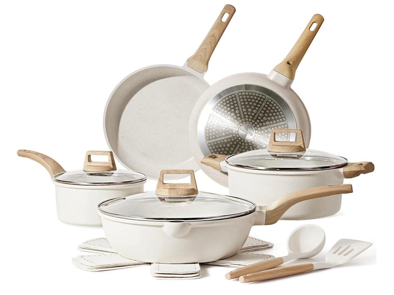 Preparing homemade meals should be enjoyable, but scratched, gunky pots and pans can muck up the experience — not to mention the food. The good news? You don’t have to spend a fortune on a new cookware set. The fan-favorite Carote 14-Piece Nonstick Pots and Pans Set boasts slick interiors that make cleaning a total cinch — but what we’re really excited about? The whole shebang is marked down to just $66 (its all-time lowest price) at Amazon. Yes, chef!