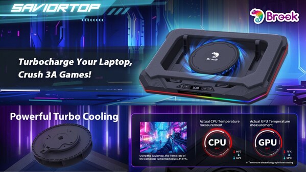 TAIPEI, May 6, 2025 /PRNewswire/ — With the rapid advancement of gaming laptop performance, more users are turning to notebooks for demanding tasks like 3A gaming, video editing, and streaming. Brook proudly introduces the Saviortop Gaming Laptop Cooler— a gaming-focused cooling solution designed to unlock the full potential of entry- to mid-tier gaming laptops. This external laptop cooling pad not only stabilizes system performance but also helps prolong device life and eliminate gameplay disruptions caused by heat.