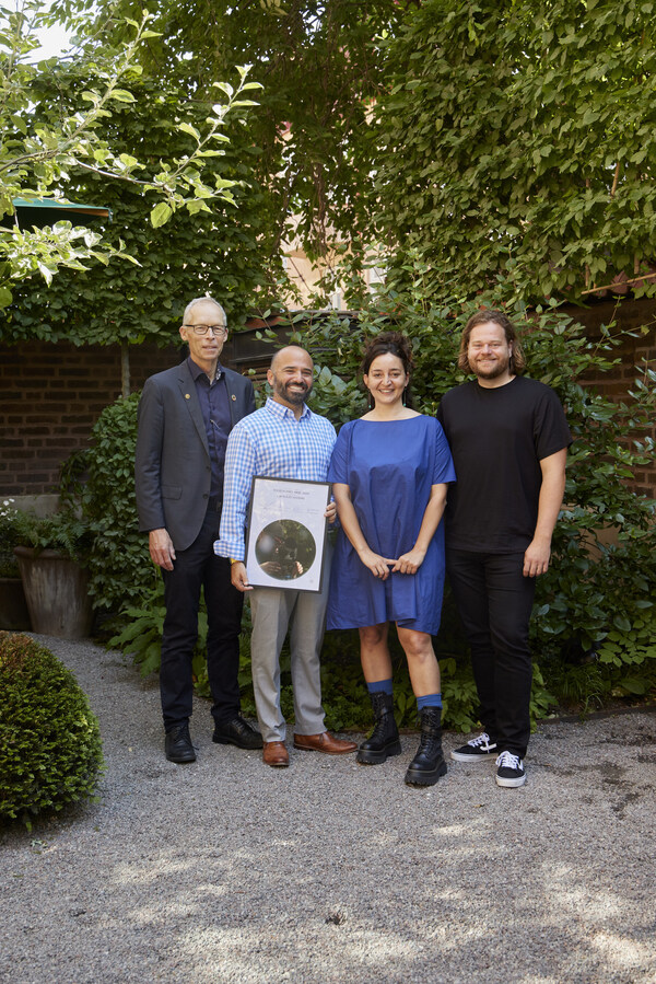 Winner of the Food Planet Prize 2024: C40 Food Systems. Zachary Tofias, Director of Food and Waste, and Stefania Amato, Head of Food Strategy at C40 Cities Climate Leadership Group, posing with the winner’s diploma together with the Co-Chairs of the Food Planet Prize jury: Johan Rockström (left), Director of the Potsdam Institute for Climate Impact Research, and Magnus Nilsson (right), Michelin Star Chef, organic apple farmer and Director-General of the Curt Bergfors Foundation.