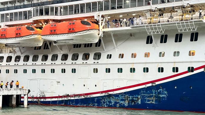 “Strong winds and swells caused the pier fender to collapse under pressure,” a Carnival spokesman told USA Today.
