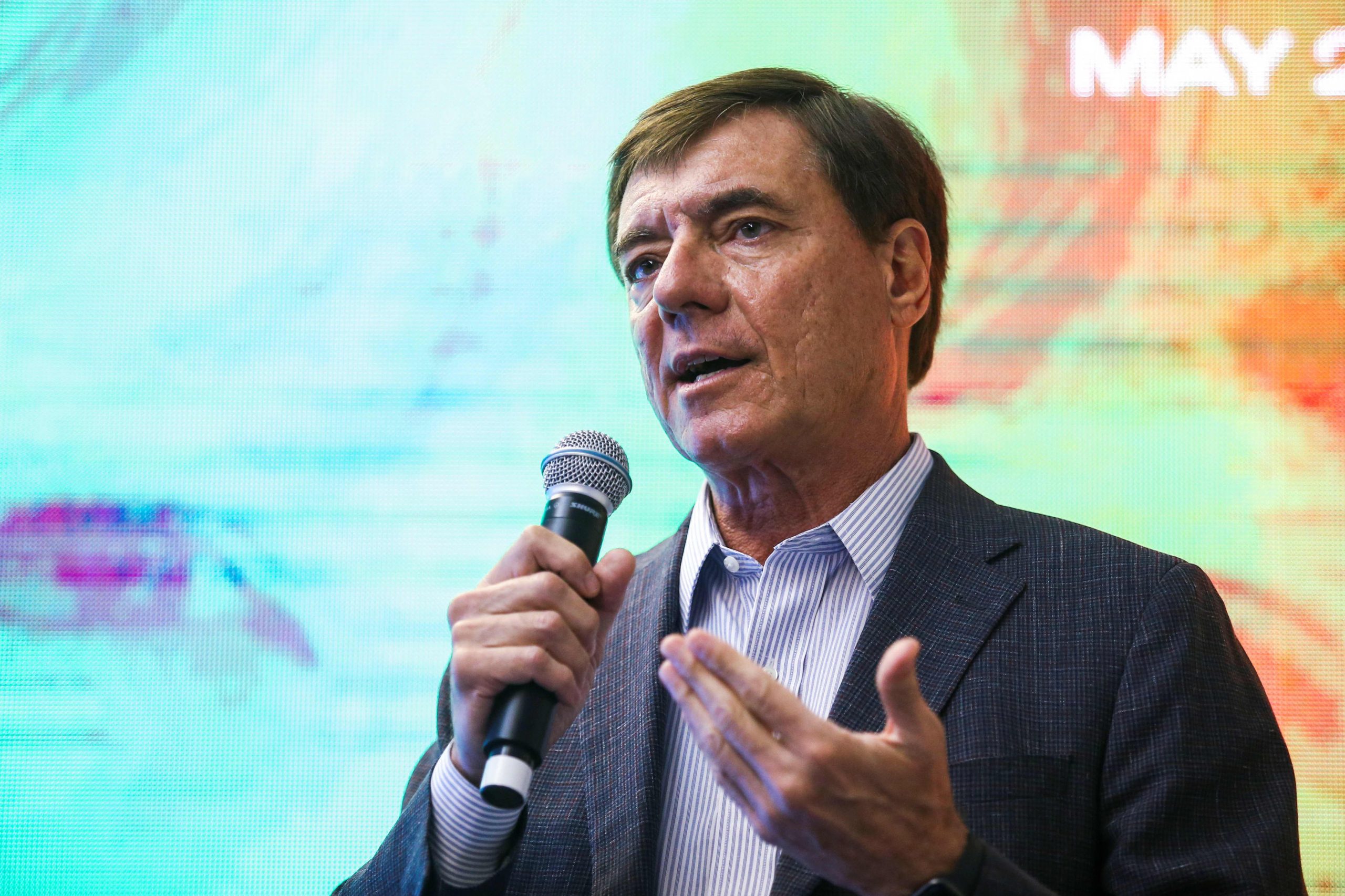 Embraer CEO Francisco Gomes Neto speaks during the Embraer Media Day 2022 at the aircraft factory in Sao Jose dos Campos, Brazil, May 30, 2022.