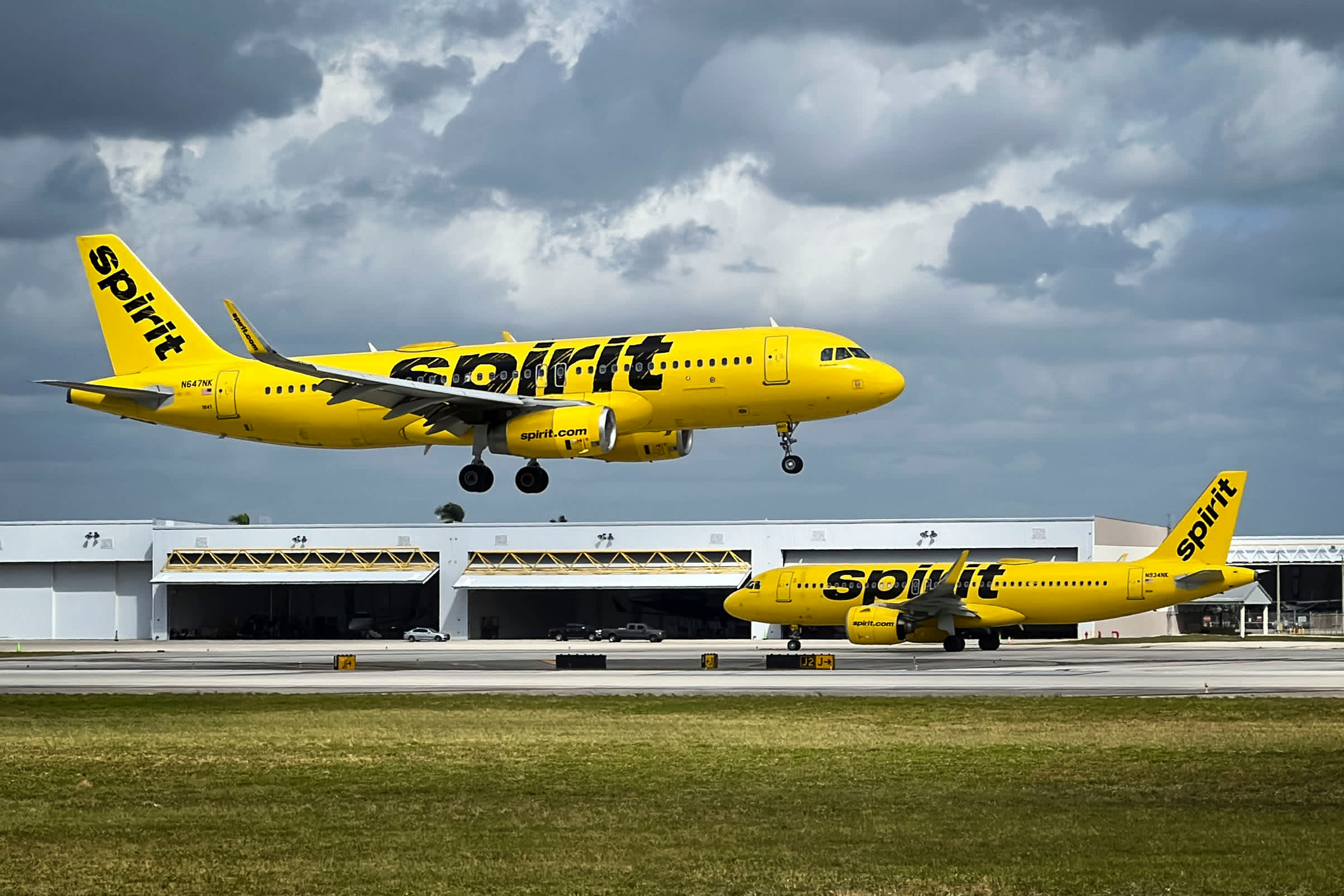 Spirit Airlines airplanes at Fort Lauderdale-Hollywood International Airport (FLL) in Fort Lauderdale, Florida, US.