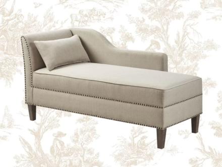 Perfect at the end of the bed, in a bay window or a corner by the bookcase for reading, a chaise is a romantic way to add interest to a room. You’ll love the linen texture and nailhead detail (and the 60% off discount).