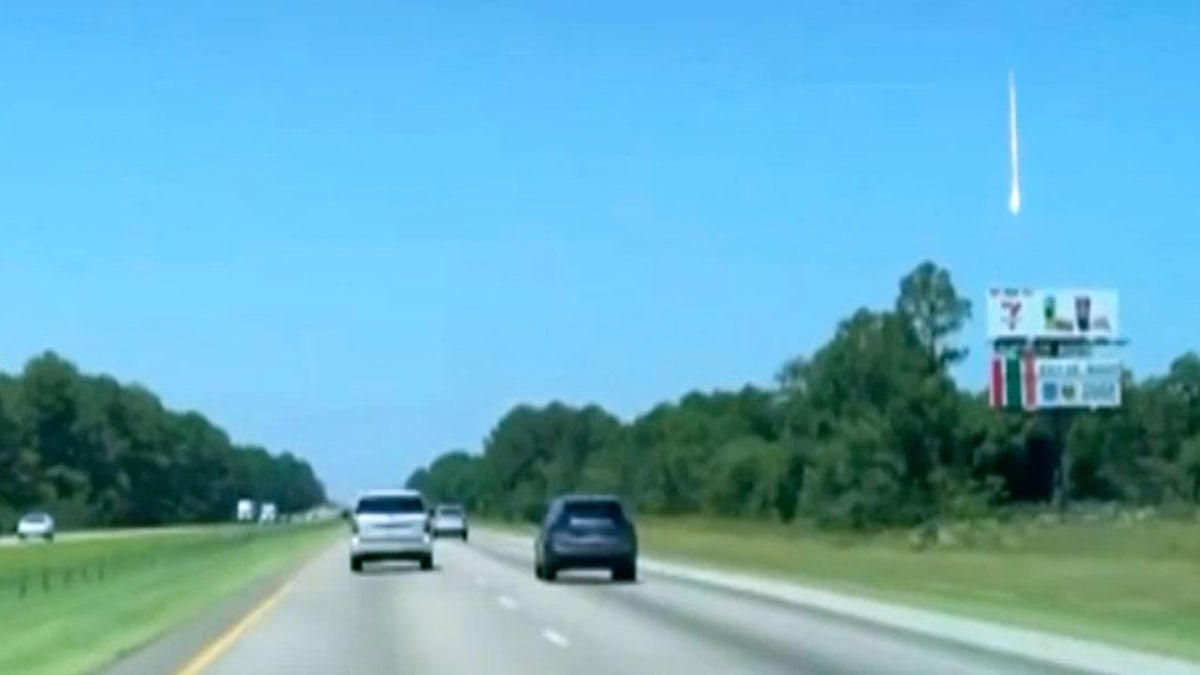 In a video screenshot, a bright object, later determined to be a meteorite fragment, is seen in the sky in McDonough, Ga., June 26, 2025. (Bryan Jennings Updyke via AP)