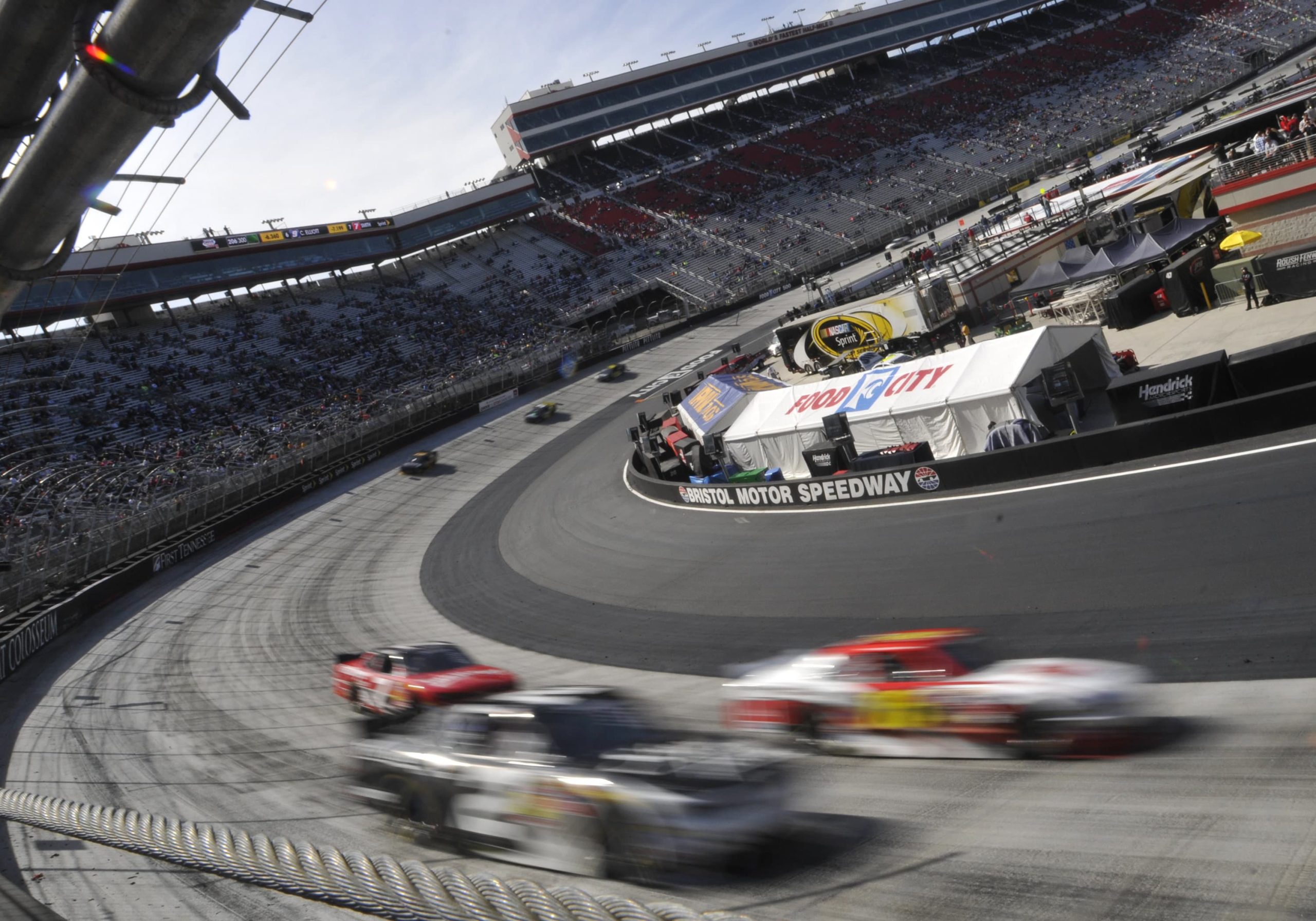 General race action during the Irwin Tools Night Race at the Bristol Motor Speedway.