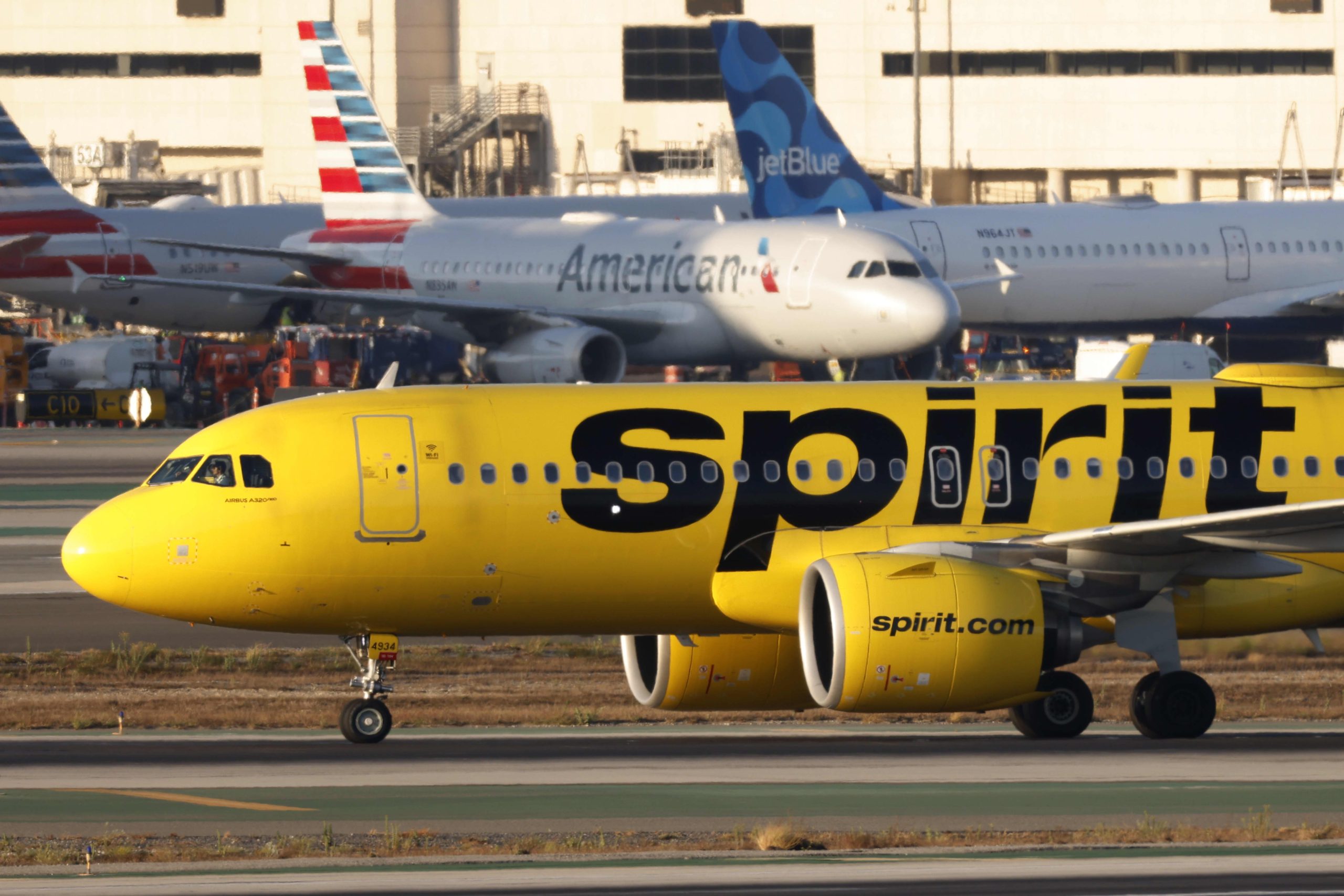 A Spirit Airlines flight arrives at Arnold Palmer Regional Airport in Westmoreland County, Pennsylvania, U.S., September 18, 2025.