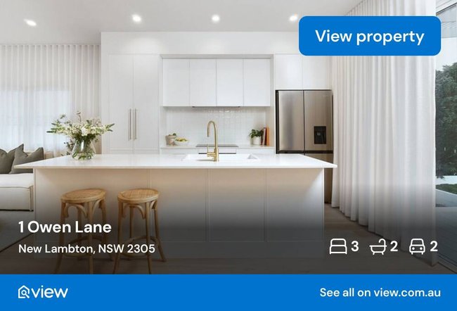 The house at 1 Owen Lane in New Lambton is marked as under offer with a price guide of $1.2 million to $1.32 million, indicating the pair’s profit could come out even further ahead.