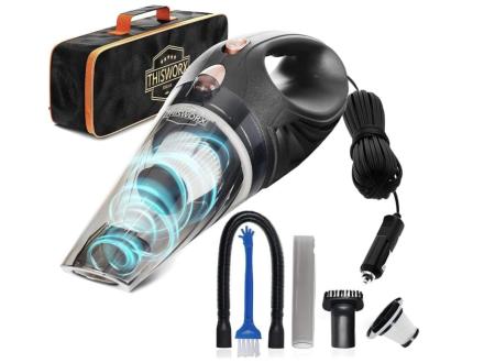 Cordless vacs are convenient, but they don’t always have enough power to get the job done the way a dedicated car vacuum does. No worries with this one: It has a 110-watt motor and a 16-foot cord for getting in between seat cushions and down into that no-man’s-land under the seat.