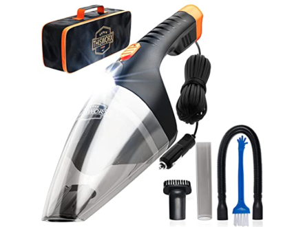 Cordless vacs are convenient, but they don’t always have enough power to get the job done the way a dedicated car vacuum does. No worries with this one: It has a 110-watt motor and a 16-foot cord for getting in between seat cushions and down into that no-man’s-land under the seat too.