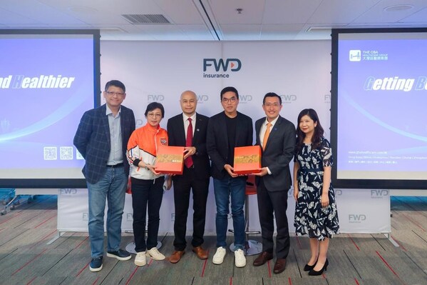 From Left to Right: Peter Lau, Chief Digital Officer and Head of Agency Development, FWD Hong Kong & Macau; Veronica Chong, Senior Regional Director, FWD Hong Kong; Dr. Kenny Kung, Co-Chief Executive Officer and Chief Medical Officer, The GBA Healthcare Group; Kelvin Yu, Chief Product Officer, FWD Hong Kong & Macau; Dr. Felix Lee, Co-Chief Executive Officer, The GBA Healthcare Group; Cally Wong, Assistant Vice President, Head of Health Management and Product Development, FWD Hong Kong.
