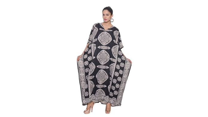 Ready to step up your caftan style? This incredibly vibrant frock will do the trick. Whether you’re covering up at the beach or sashaying all over a cruise ship, it’s extravagant but low-maintenance.