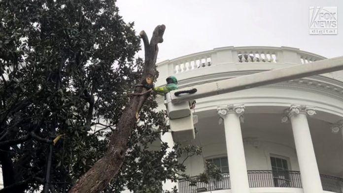 The White House Executive Residence, and its Office of the Curator, will ensure the preservation of the salvageable remnants of the “Jackson Magnolia” and use those for future saplings. (Ashley DiMella/Fox News Digital )