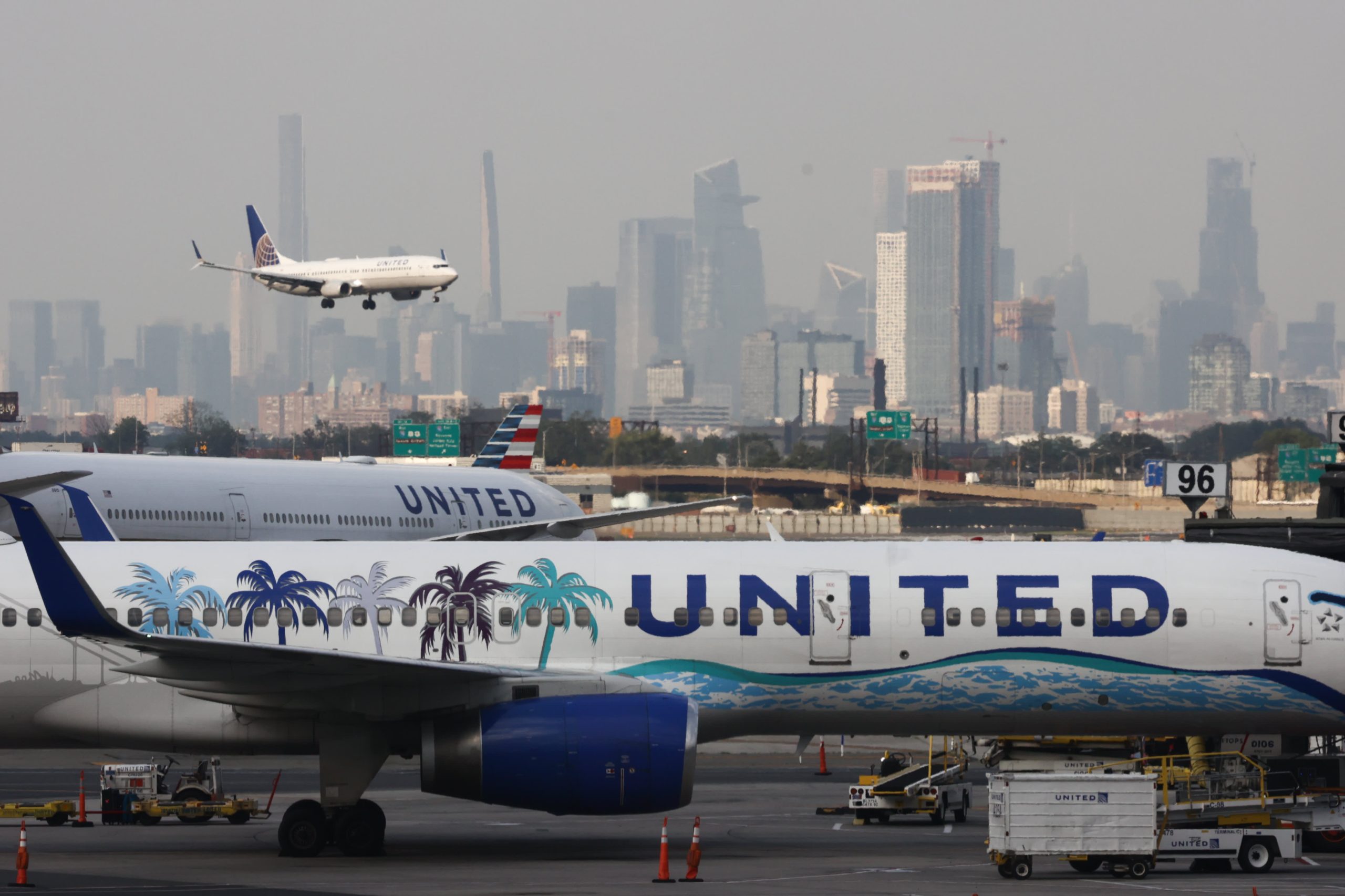 United airplanes are seen at the Newark Liberty International Airport in Newark, Unitted States on July 16, 2024.
