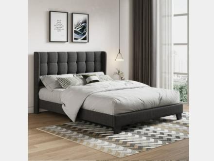 I love a bed with a tufted headboard and upholstered base and this budget-friendly find is a real steal. A classic, it blends with most aesthetics while providing a comfortable and visually pleasing focal point for the room. Available in dark gray (shown here or blue), there’s no need for a box spring here, and it’s adjustable bed compatible.