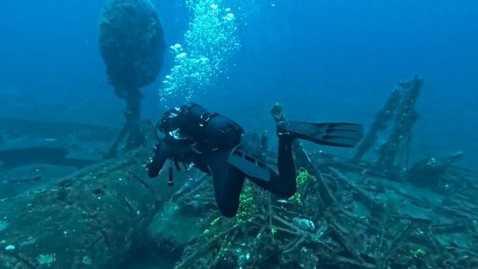 Diver near shipwreck site